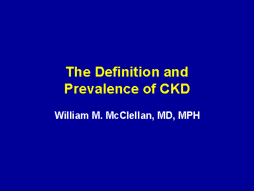 Dr. William McClellan: Thank you, Kline. Actually I'm going to spend more time talking about where we can find these patients and much less and in fact very little time at all talking about the definition of chronic kidney disease. And the reason for that is that I think one of the most exciting and engaging problems facing nephrology today is the answer to the question "Can we devise a strategy to reverse this epidemic of end stage renal disease that's been occurring in the United States during the last two decades?"