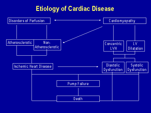 That leads to clinical ischemic heart disease causing angina and myocardial infarction. And then cardiomyopathy which may be caused by left ventricular hypertrophy, LV dilatation, which lead to both diastolic dysfunction and subsequently to this systolic dysfunction. These conditions predispose to pump failure or left ventricular failure which in turn predispose to death. We know from most of the studies that the pump failure is a bigger predictor of mortality than the presence of symptomatic ischemic heart disease in these people.