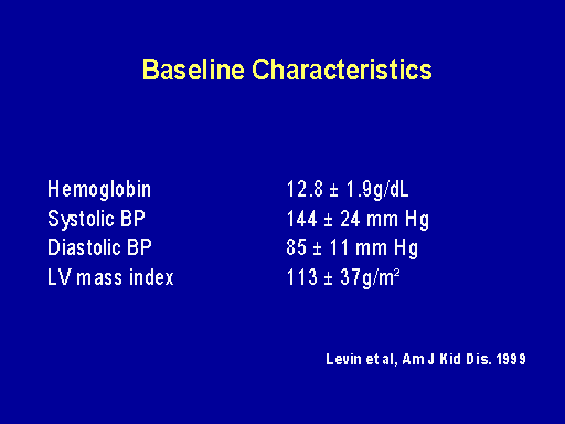 So this is a Canadian study published in '99 of between 200-300 patients whose mean creatinine clearance was 37 ml per minute, whose baseline hemoglobins were 12.8 and blood pressure 144 over 85. So they didn't have severe risk factors.
