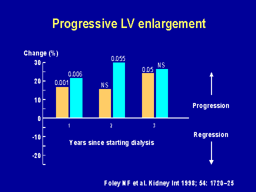 And just a quick review of what happens when people start dialysis. There's a deterioration in the left ventricular volume and left ventricular mass index that occurs over the following few years that's associated with being on hemo rather than PD and is associated with anemia.