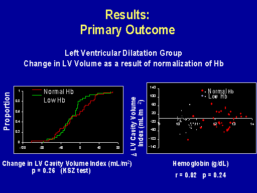 The anemia story is difficult because we have no clinical trials. This is one of dialysis patients in which we looked at the outcome for people who had left ventricular hypertrophy or LV dilatation who were normalized to hemoglobin normal or partially corrected.