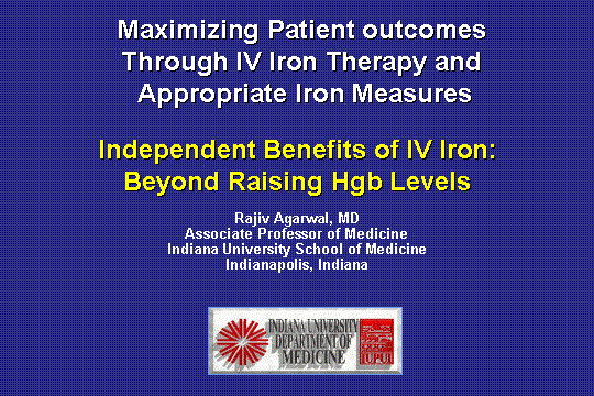 Our first speaker is Dr. Rajiv Agarwal. Dr. Agarwal's an Associate Professor of Medicine at Indiana University School of Medicine. He works predominantly at the Veteran's Administration Hospital there and is an expert in hypertension, anemia and in particular, iron utilization and administration in CKD and ESRD patients. And he will be talking on the independent benefits of IV iron, beyond raising hemoglobin levels. Rajiv?.