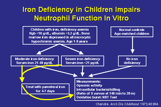 - Chandra RK. Reduced bactericidal capacity of polymorphs in iron deficiency. Arch Dis Child. 1973 Nov;48(11):864-6.