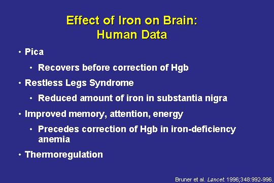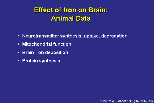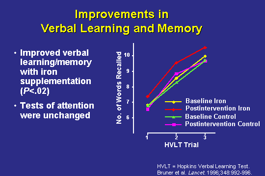 - Bruner AB, Joffe A, Duggan AK, Casella JF, Brandt J. Randomised study of cognitive effects of iron supplementation in non-anaemic iron-deficient adolescent girls. Lancet. 1996 Oct 12;348(9033):992-6.