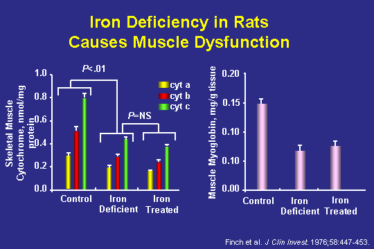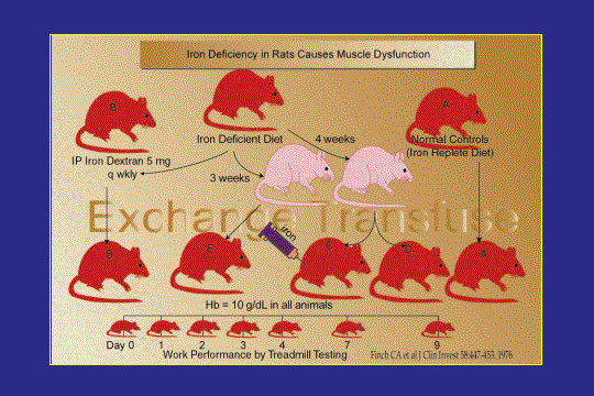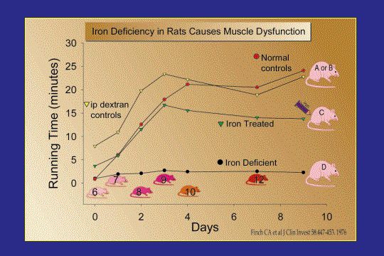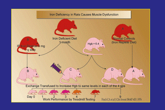 - Finch CA, Miller LR, Inamdar AR, Person R, Seiler K, Mackler B. Iron deficiency in the rat. Physiological and biochemical studies of muscle dysfunction. J Clin Invest. 1976 Aug;58(2):447-53.