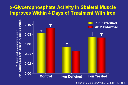 What they figured out is, there's an enzyme in the mitochondria which is a complicated name, alpha-glycerol phosphate in the skeletomuscle. It's a mitochondrial enzyme, which is important for the performance of oxidative phosphorylation. And in the iron deficient animals, it falls, and in the iron treated animals, it rises. So, iron is actually impacting mitochondrial function, which is then, in turn, impairing our physical performance. I haven't found this kind of a study in a human being. Otherwise, I would have shown it to you. Actually, I'm not a rat doctor. I'm a human doctor. But there isn't any such study in humans. But I think there's a very compelling evidence that iron deficiency itself can impair physical activity. In fact, there's an old paper in Scientific American. I read it about 20 years ago, and they looked at workers in Indonesia, and they supplemented them with oral iron, and their performance improved. When they have iron deficiency, they had less time off work, they could perform more work in the factory, and it improved their performance. It was like an anecdote that was published in Scientific American by this famous person who was an expert in iron metabolism. But they are anecdotes, but I think there's probably some truth behind it.
