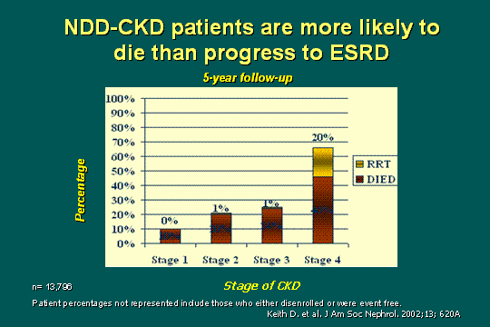I think if you look at the patients you see who enter the dialysis unit and who have not been seen in the clinic for predialysis treatment, you know the answer very well. These patients are dying before they ever get to ESRD and in a sense it is only the lucky ones that make it to this point. As you can see by stage and by percentage at stage 4, there are more people dying than reaching dialysis. The group that is not mentioned there, in this Medicare 5-year follow-up is the event-free. If you put them in, it would be even more impressive as to the number that really come to see us in the dialysis unit.