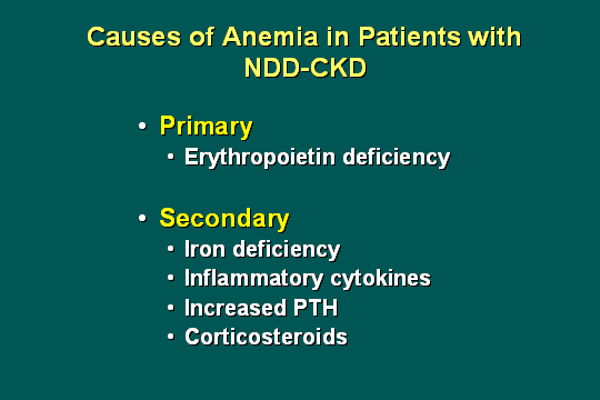 If anemia is the big problem that is predicted here, what can we do about it and what are the causes? Unquestionably, as the kidney shrinks, EPO deficiency sets in, but the secondary causes of iron deficiency, inflammatory condition, and hyperparathyroidism are also very important. Today we will talk about iron deficiency and what causes it and how prevalent it is, and what we can do about it.