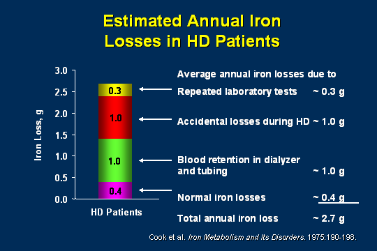 This is an older slide, but I put it here to remind myself. I told you that patients are losing a great amount of iron. I have some people who are all the way up who are still probably losing 2.5 g or that neighborhood iron a year. If you look at that and say - our patients are losing that much iron - how are you giving that back to them?
