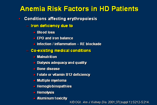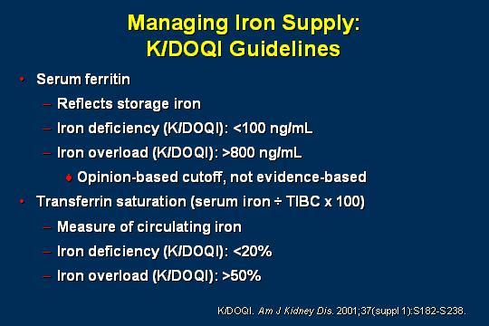 - IV. NKF-K/DOQI Clinical Practice Guidelines for Anemia of Chronic Kidney Disease: update 2000. Am J Kidney Dis. 2001 Jan;37(1 Suppl 1):S182-238.
