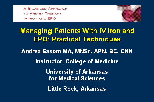 Managing Patients With IV Iron and EPO : Practical Techniques (Part I) |