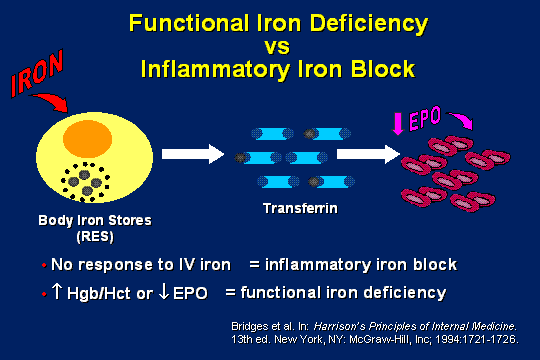So, what can you do? Try it. They might like it. You give a dose of iron. If you have no response to the iron, then you have inflammatory iron block. Now remember I said inflammatory. It could be infectious, it may not be infectious but at that point you need to look.