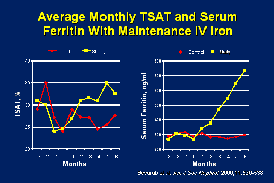 - Besarab A, Amin N, Ahsan M, Vogel SE, Zazuwa G, Frinak S, Zazra JJ, Anandan JV, Gupta A. Optimization of epoetin therapy with intravenous iron therapy in hemodialysis patients. J Am Soc Nephrol. 2000 Mar;11(3):530-8.
