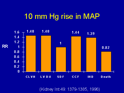 (Foley RN et al. Kidney Int 1996; 49:1379-1385.)If you actually look at patients who get cardiac failure, among patients who have had it, the biggest prognostic indicator that they have is low blood pressure. I think what we are seeing is the fact that we have such a heterogeneous population in our dialysis units. I think that hypertension is a major factor that we can do something about it.
