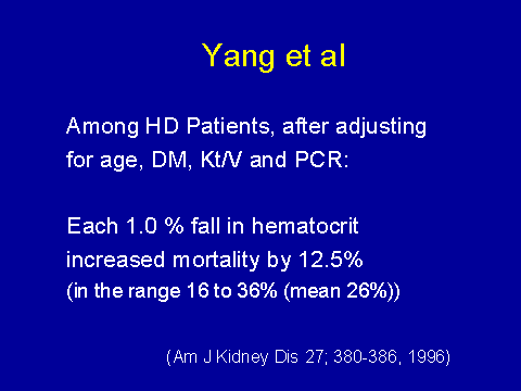 (Yang C-S et al. Am J Kidney Dis 1996; 27:380-386.)Anemia as a cardiovascular risk factor