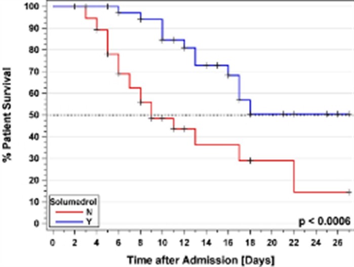 Survival in the steroids group reached 73% at 21 days compared to 36% in the